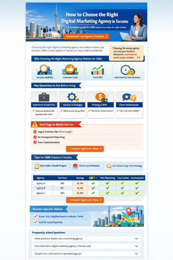 Choosing the right digital marketing agency can be a game-changer for your small or medium business. Toronto is full of agencies claiming they can deliver results, but not every agency is the right fit for your business. Picking the wrong one can lead to wasted time, money, and missed opportunities.