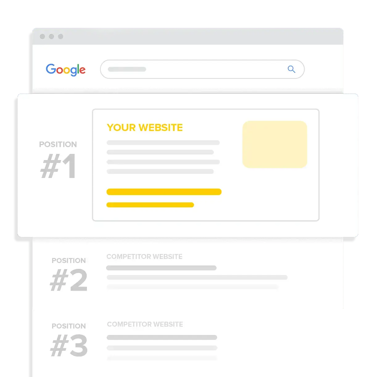 We can’t guarantee specific rankings, but we use proven, ethical SEO practices to maximize your chances of reaching top positions.